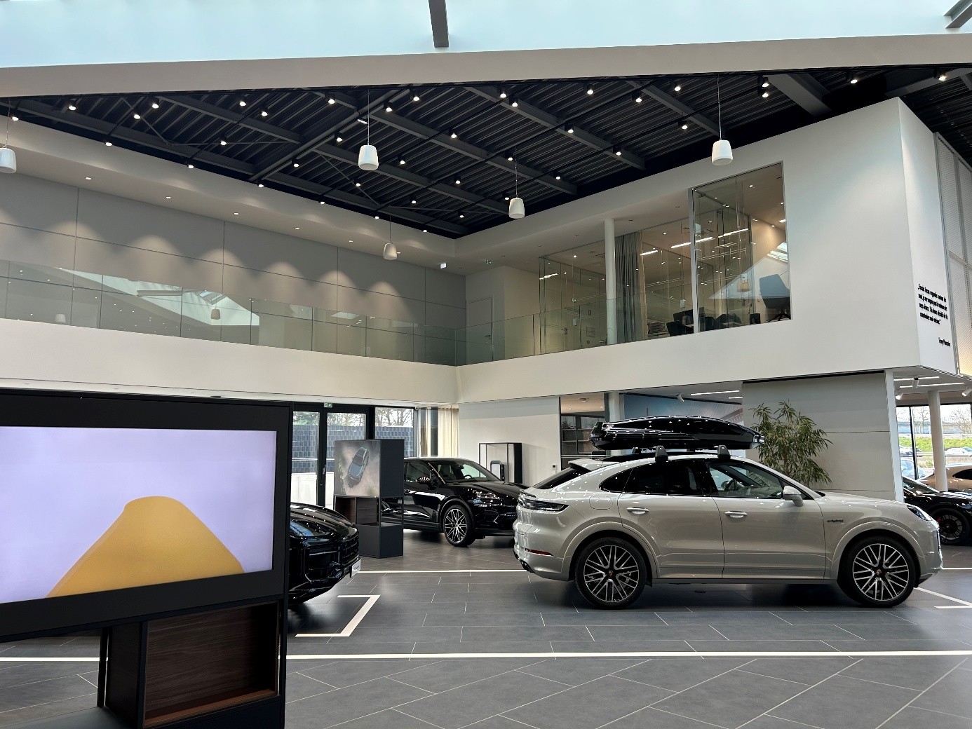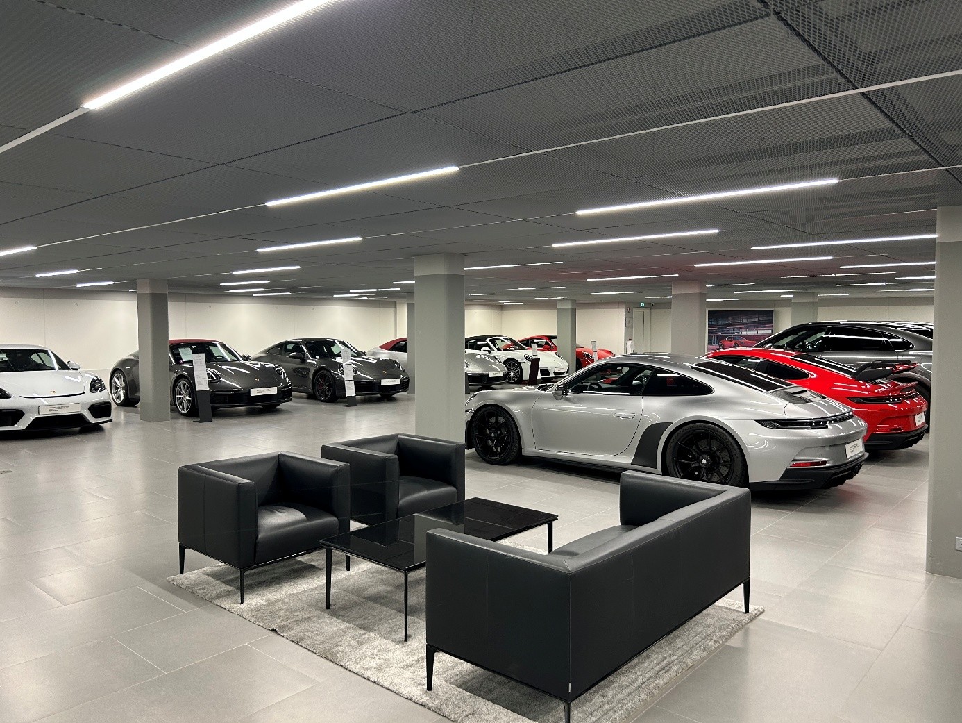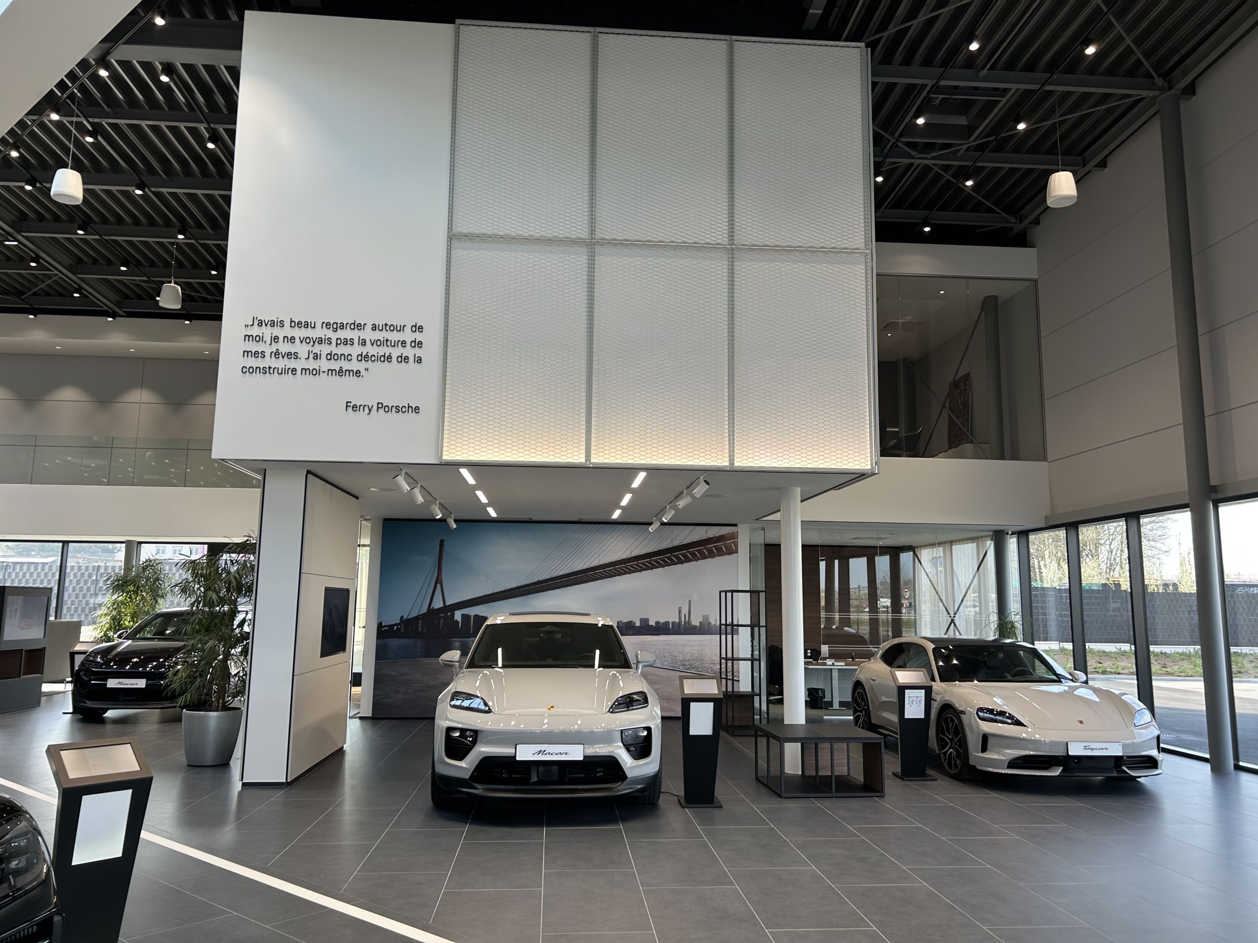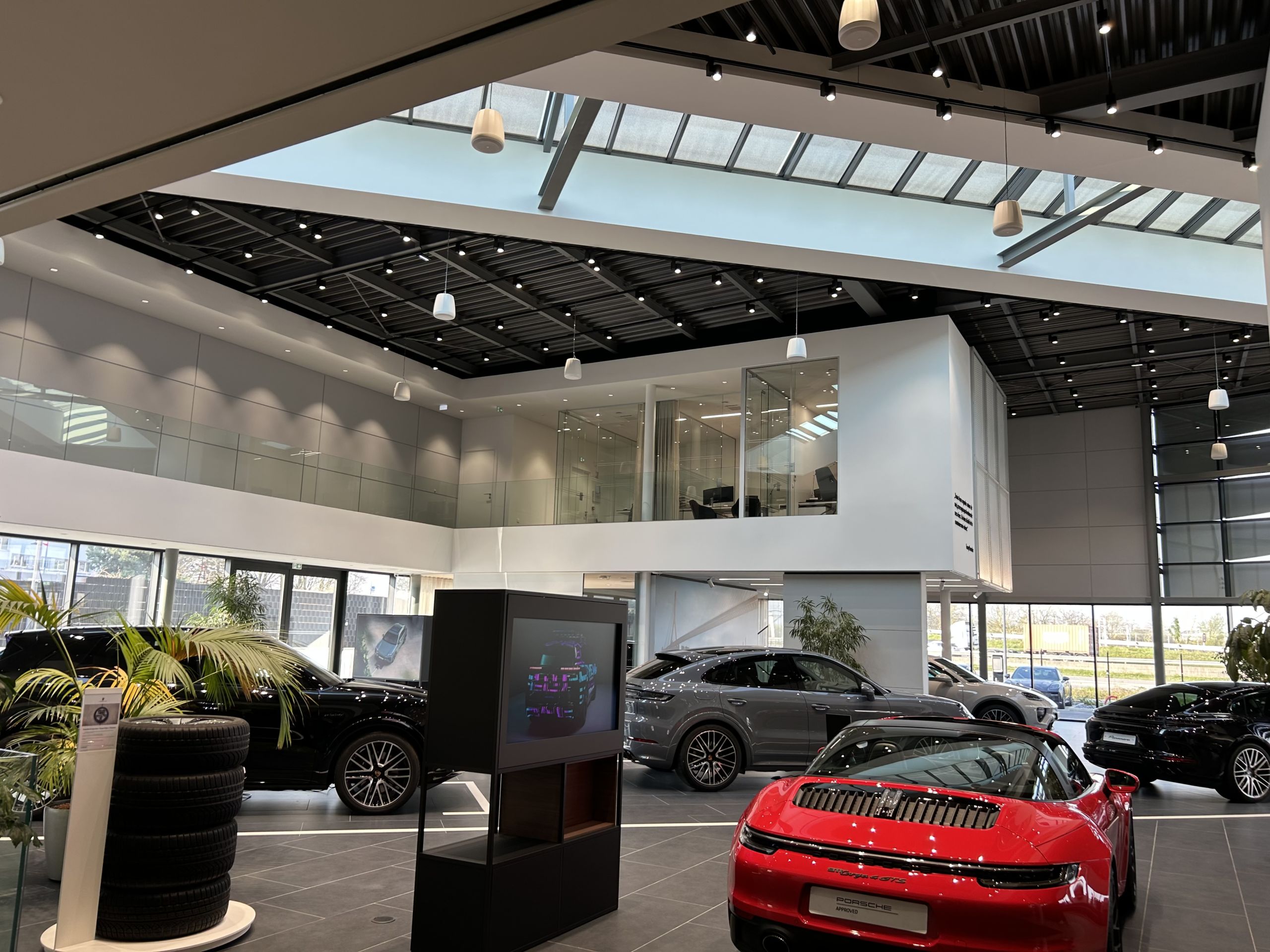 Le résultat ? Un écrin lumineux qui valorise parfaitement l’expérience premium du Centre Porsche Strasbourg.