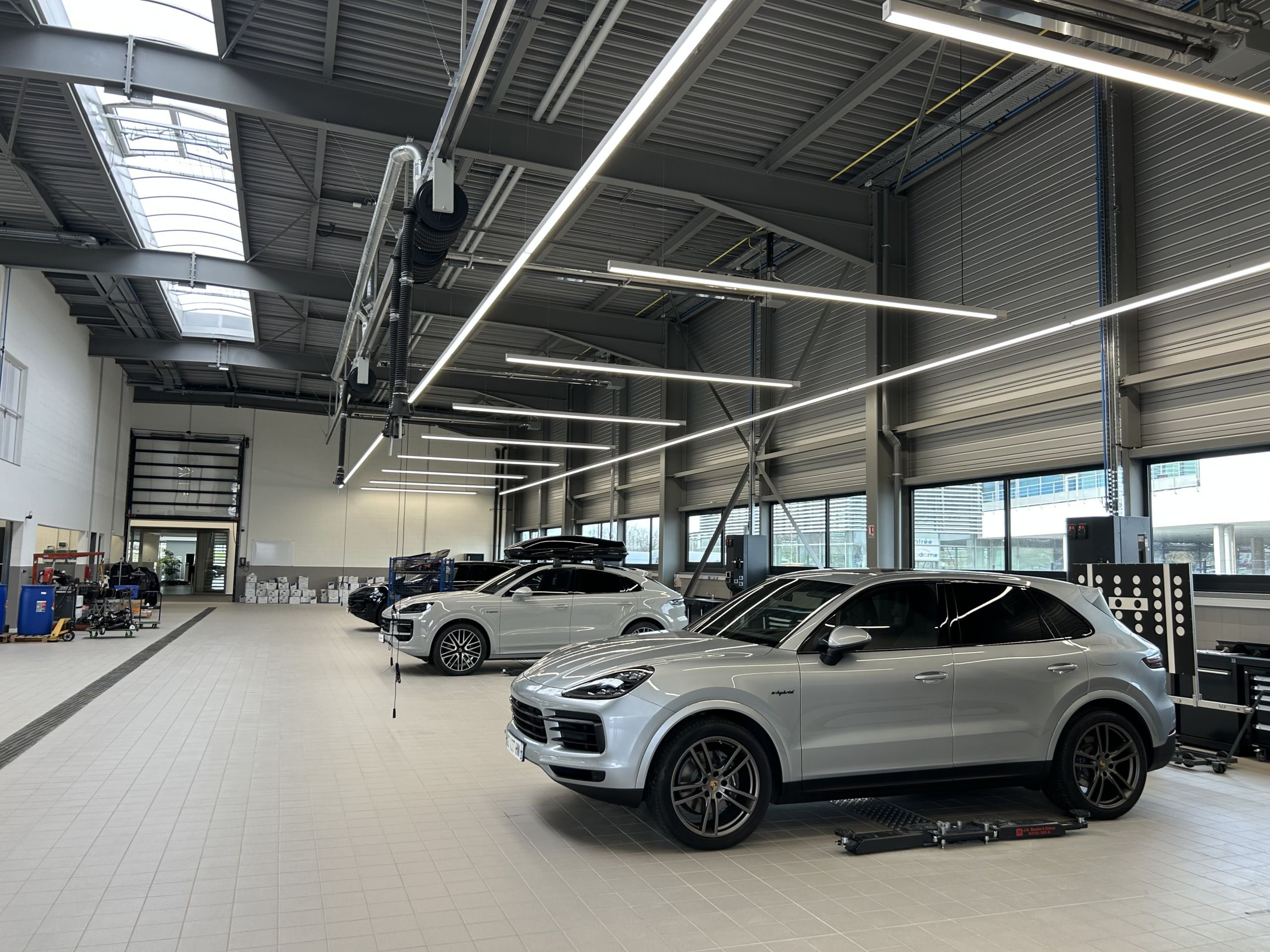 Une architecture d’exception mérite un éclairage à sa mesure. Pour ce nouveau projet de référence, Pilotage Groupe a conçu une mise en lumière globale capable de sublimer l’identité de la marque Porsche tout en structurant les différents espaces.